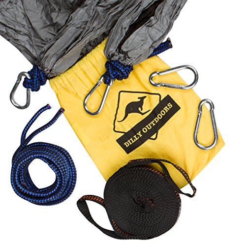 ALL ACCESSORIES INCLUDED: 2 x Nylon Tree Straps, 2 x Aluminium Alloy Bent-gate Carabiners, 2 x Paracord / Parachute Cord
