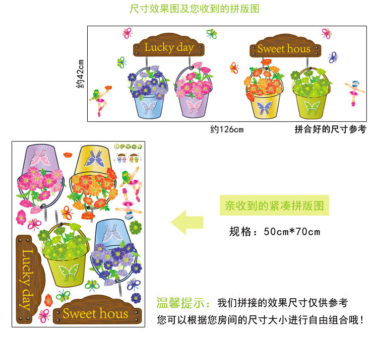 可移除墙贴纸墙纸贴画花篮 儿童房幼儿园墙壁装饰卡通客厅阳台