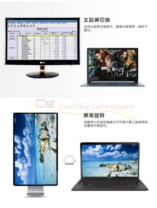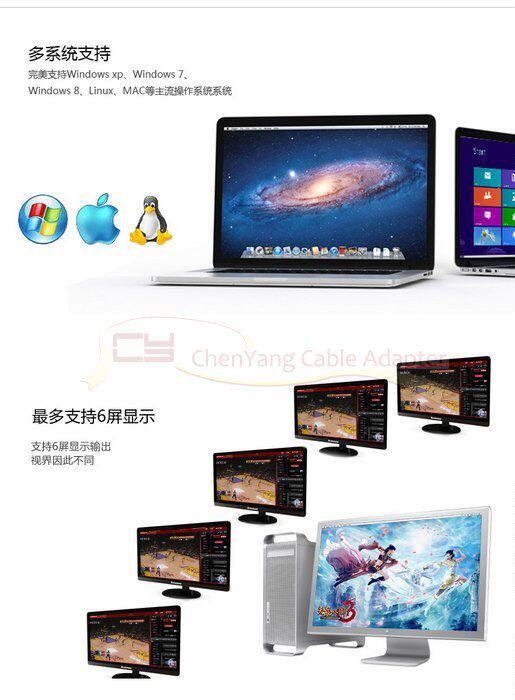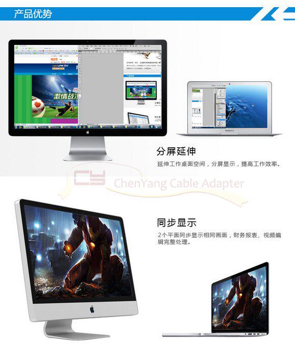 本产品能让苹果 Macbook或Windows电脑轻易的连接、增加DP显示设备来延伸桌面工作空间。