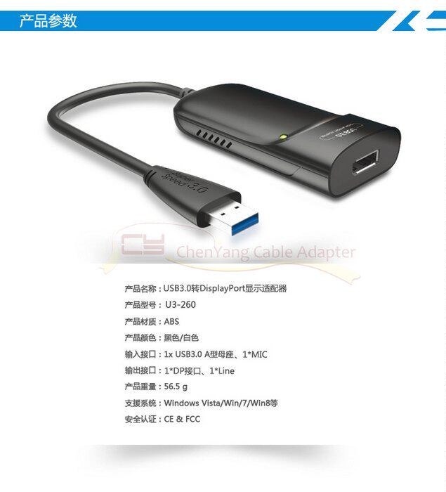 USB 3.0外置显卡USB3.0转DP转换器 6屏扩展 2560*1600超高清多屏显卡
