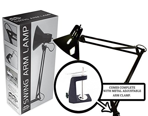 Swing Arm Lamp by HHP | Light for Desk Drafting Table Architect Artist Home Office Studio | Included Black Metal Clamp
