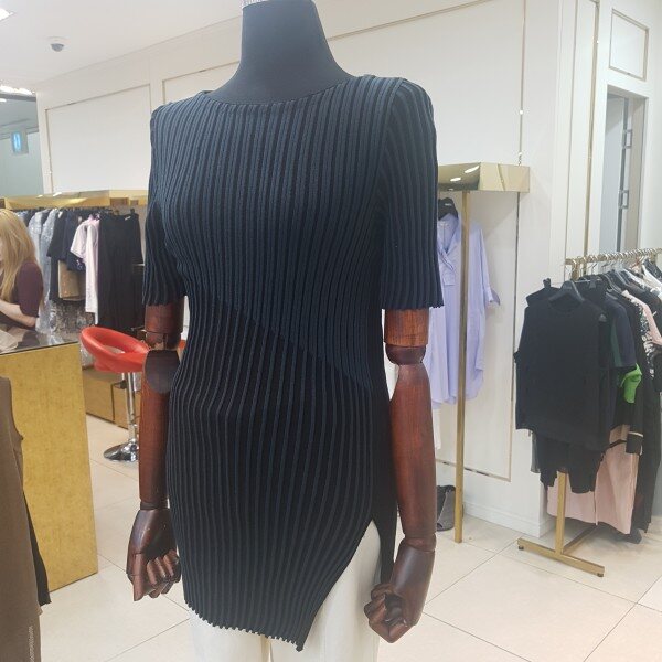 골지문양의 트임이 들어간 니트티셔츠입니다.