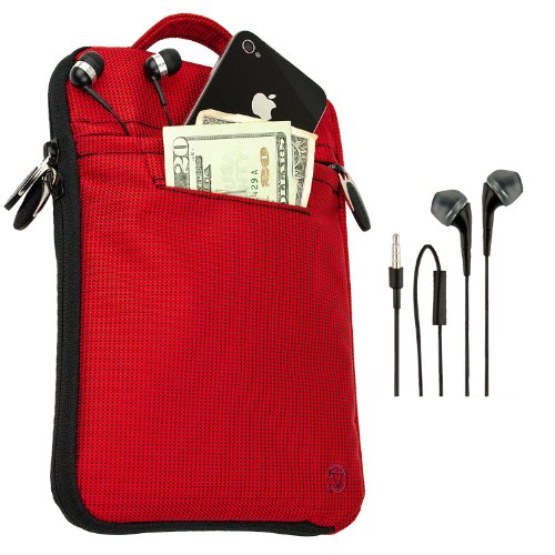 -. Title : VanGoddy Hydei Sleeve Modern Nylon Padded Bag Pack Cover Case FIRE RED fits Barnes & Noble Nook Tablet / GlowLight / HD / Color Smart eReader + Black Hands-free Earphones (Headphones with Microphone)