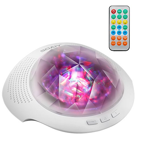 SOAIY Sleep Sound Machine & Northern Light Projector with Bluetooth, Remote, Timer, White