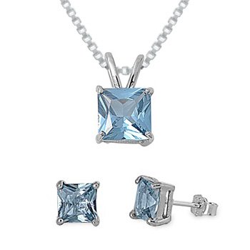 -. Title : P.R.Incess Cut Simulated Aquamarine Sterling Silver Necklace & Earrings Set