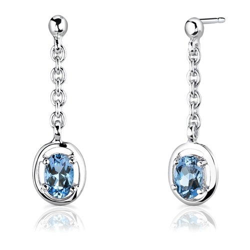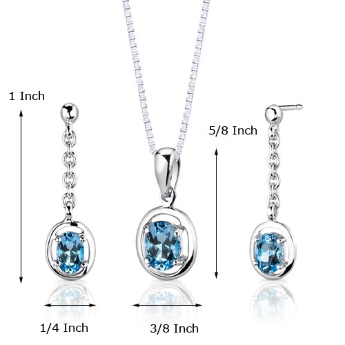 -. Title : Swiss Blue Topaz Pendant Earrings Necklace Sterling Silver Rhodium Nickel Finish Oval Shape Dangle Style