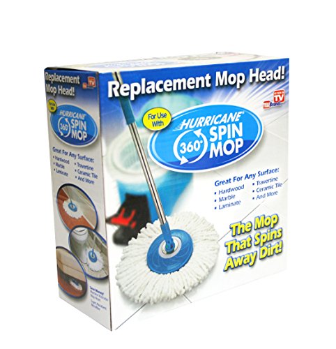 One (1) original microfiber Hurricane 360 Spin Mop replacement mop head. Great washable mop head refill for cleaning any surface including hardwood, laminate, tile, marble, and Travertine. This Spin Mop head replacement does not include the bucket or mop handle.Feature