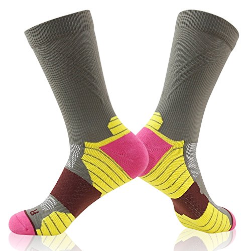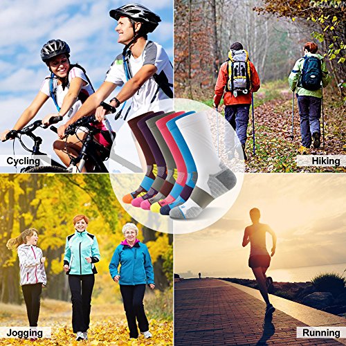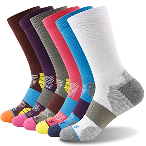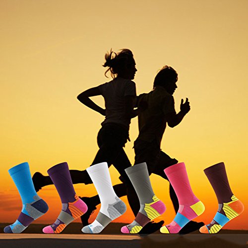 -. Feature : PERFECT FIT: The deep heel pocket, seamless toe and thick padded sole provide a perfect fit without tiredness during long distance running. The cushion over the toes helps protect runners against injuries. Elastic cuffs ensure the Athletic Padded Socks stay in place even during strenuous exercise. The tube with high elasticity of these Sports Running Crew Socks won't compress your leg. / MOISTURE WICKING: The cushion sole is engineered to provide superior moisture wicking management and keep your feet dry. The mesh construction design on the top of these socks enables your skin to breathe. Best gift choice for sports enthusiasts in cold weather, giving them maximum comfort during running, biking, hiking, trekking or other outdoor sports and exercise. It's also perfect for casual daily wear. / SIZE & COLOR: Getspor Unisex Running Socks come in one size that fits US Men/Women's Shoe Size 5-11. Each sock is marked with "R" (right) or "L" (left) for you to easily identify which one to fit which foot. Our Athletic Hiking Socks for Men and Women are available in 6 different fashionable colors that will add vitality and fashion sense to your tracksuit. / MEN/ WOMEN'S RUNNING SOCKS: These Unisex Cushioned Socks fit comfortably with any running and cycling shoes. The variety of color choice ensures that you'll find the perfect pair to match your sports clothing and sneakers. / RELIEVE COMPRESSION: The Cushioned Crew Socks can significantly promote the blood circulation and greatly relieve the compression! The strong support is perfectly located on Heels, Feet and Calves, and the toe area won't squeeze your aching joints.