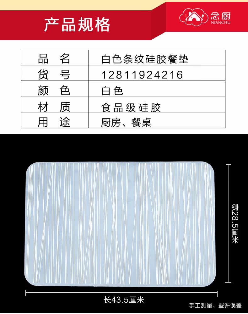 烘焙揉面垫餐桌垫防滑白色条纹DIY案板垫硅胶垫子 ?