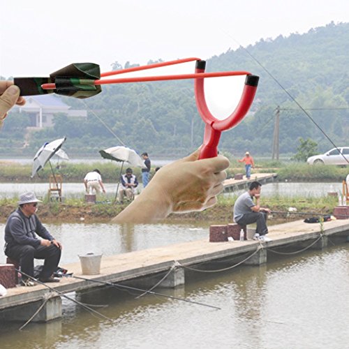 -. Feature : Fresh Water Bait Thrower Slingshot / Color: Red, Show as picture / Material: Rubber Band + Plastic / Size: about 12.5cm*11cm / Package content: 1 * Fishing Bait Slingshot