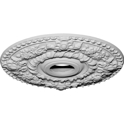Our ceiling medallion collections are modeled after original historical patterns and designs. Our artisans then hand carve an original piece. Being hand carved each piece is richly detailed with deep relief, sharp lines and a truly unique touch. That master piece is then used to create a mold master. Once the mold master is created we use our high density urethane foam to form each medallion. The finished look is a beautifully detailed, light weight, solid construction, focal piece. The resemblance to original plaster medallions is achieved only by using our high density urethane and not vacuum formed, "plastic" type medallions. Medallions can be cut using standard woodworking tools to add a hole for electrical or a ceiling fan canopy. Medallions are light weight for easy installation. They are fully primed and ready for your paint. If you have any questions feel free to ask. These are in stock and available for immediate shipment.Feature