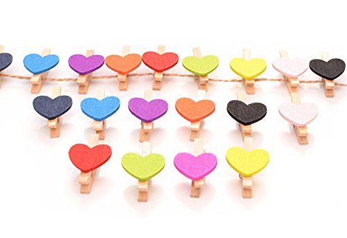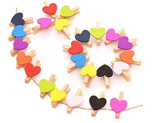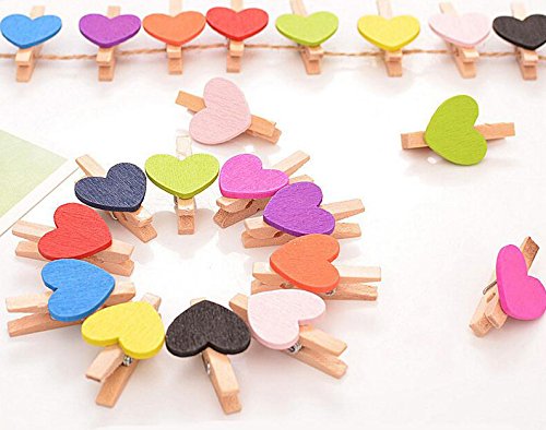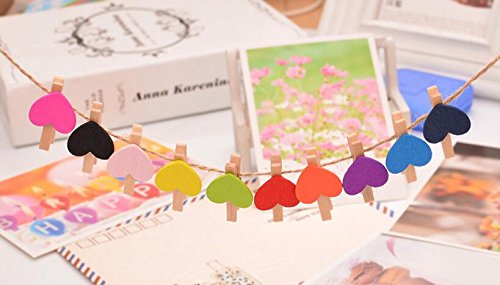 Mini Sweet Love Heart Shape Wooden Clips Message Photo Holder Card Paper Pegs Decor Photography Clothespins Photo Postcard Peg Craft Clip Random Color (50 Pcs)