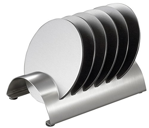 - Made with stainless steel; six round coaster with rubberized bottom for non-slipping; finger prints resistant brushed finish