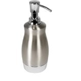 -. Feature : Split-brushed stainless-steel body and base / Pump action liquid dispenser / Easy to refill stainless-steel soap pump Manufacturer's warranty / Dimensions: 3.5"L x 3.5"W x 8.25"H (8.89 cm x 8.89 cm x 20.955 cm) / Tall stainless-steel soap pump for lotion from the accessories collection is stylish