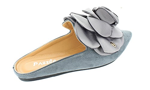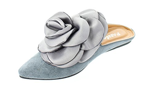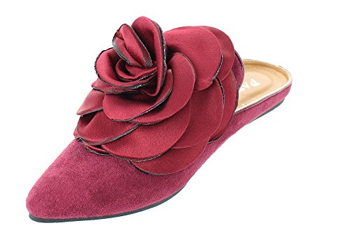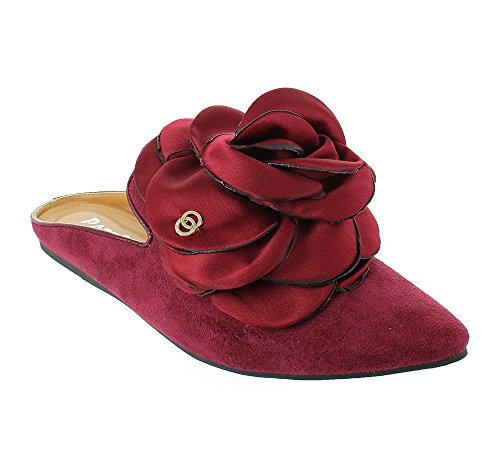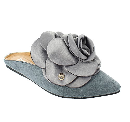 Urban Heels Women's Backless Slip On Flower Decor Slide Slipper Loafer Flats