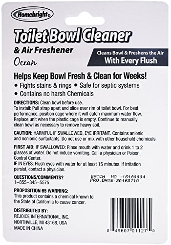 -. Feature : Includes Toilet Bowl Cleaner Air Fresheners! / Features 2 Scents - Lavender and Ocean! / Fights Stains and Rings! / Safe for Septic Systems! Contains No Harsh Chemicals! / Helps Keep Bowl Fresh and Clean for Weeks!