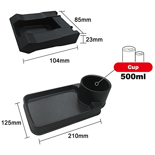 Fits most beverages sizes and has storage for smart phones, it is very nice! Car surrounding will not be dirty!