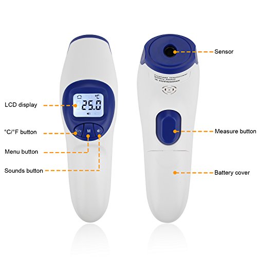 Forehead Thermometer which can be used to check room temperature as well as baby bottle temperature instantly, with the press of a button, built for your comfort and convenience. Provides fast clinical accurate instant temperature with the press of a button within a second. This top of the range thermometer is used by Pediatricians and at home by Parents and Individuals.