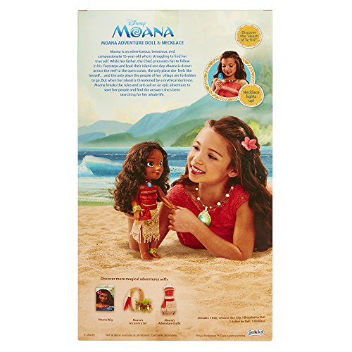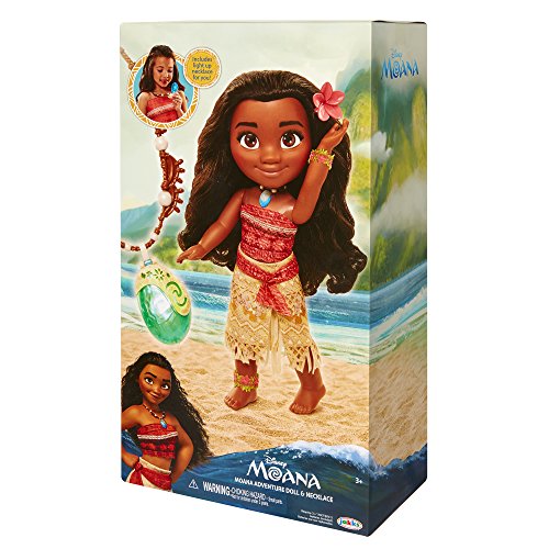 Moana is an adventurous, tenacious and compassionate 16-year-old who is struggling to find her true self. But when her island is threatened by a mythical darkness, Moana breaks the rules and sets sail on an epic adventure to save her people and find the answers she’s been searching for her whole life. Go on an ocean adventure with Moana! Moana is dressed in her iconic outfit & necklace from the film, with accessories to match. Includes a necklace for you to wear! Recommended for ages 3+Feature