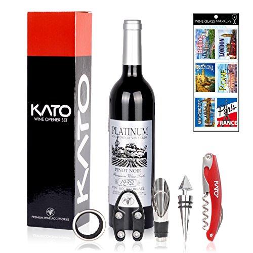 -. Title : Kato Deluxe Wine Accessory Gift Set- Wine Bottle Corkscrew Opener, Stopper, Aerator Pourer, Foil Cutter, Glass Paint Marker, with Free Reusable Drink Marker Stickers, Best Gift for Wine Lover