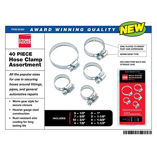 Studio : Harbor Freight Tools Publisher : Harbor Freight Tools Product Description All the popular sizes in one convenient kit for use in securing hoses around pipes and for automotive uses. Gear type clamps for secure closure. Quantities: (5) 1/2", (7) 5/8", (10) 3/4", (4) 7/8", (3) 1", (3) 1-1/16", (4) 1-3/8", and (4) 1-1/2" clamps. Pieces: 40 0