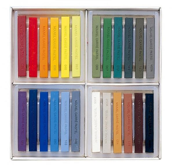 従来のコンテほど固い感じではなく、パステルのなめらかさやソフトでシックなタッチ・軽やかさを持っています。粒子の細かさ・のびの良さが特徴で、重色・混色がよくきくので技法の広さが得られます。角を使っての線描き、面を使っての面描き等に便利な角型です。 |
