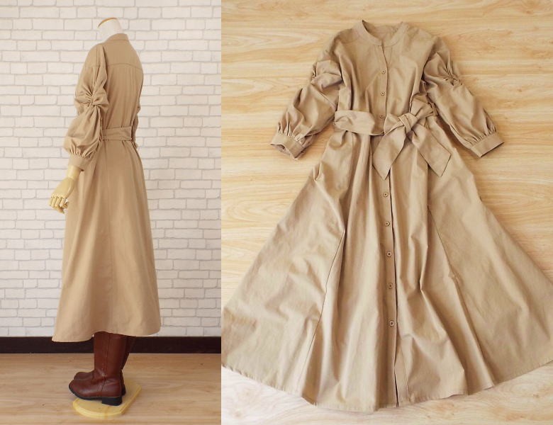 〓〓〓〓〓〓〓〓モードデザインシンプルワンピースモードスタイル&袖のデザインがオシャレな長袖ロングワンピースシンプルなデザインでありながら生地感も軽いのでこれからの季節に最適な1枚ウエストにはベルト付スタイルフロントはボタン使用にもなり羽織物にも使える万能な1枚これからの季節のお出かけスタイルにも上品なスタイルワンピースです〓〓〓〓〓〓〓〓◆素材◆コットン100%◆サイズ◆/М~Lサイズ/フリーサイズ/バスト108cm前後/袖丈40cm前後/着丈114cm前後◆カラー◆ベージュ系〓〓〓〓〓〓〓〓商品のご案内海外輸入商品の為リーズナブル価格でご提供をさせて頂いております。下記の事項をご確認ご了承の上ご注文をお願い致します。♯予約商品になります。生産輸入の関係で発送日が前後する場合がございます。♯再生産の関係で画像とデザイン、多少の色具合が異なる場合がございます。♯メジャーでの測定の為若干の誤差はご了承下さい。♯生地不良等の関係で生産中止になる場合がございます。♯海外代理店より輸入の為、商品タグ、洗濯表示がない場合がございます。