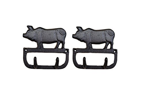 Cast Iron Pig Hook for Keys, Towels, Jewelry Great Gift Set of 2
