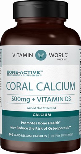 Studio : Vitamin World Publisher : Vitamin World Binding : Health and Beauty Product Description ? Supports bone health and strength** ? May reduce the risk of osteoporosis? ? Bone-ActiveTM bone density supplement** Coral Calcium Plus contains Coral Calcium, Vitamin D and Magnesium to support strong, healthy bones.** Bone-ActiveTM** provides you with an excellent source of the highest quality Calcium available. Our Coral Calcium is mined, not collected, from an aboveground source - it's an environmentally friendly choice, since it prevents damage to coral reefs beneath the ocean's surface. Available in 120 or 240 capsules. ?Adequate calcium as part of a healthful diet, along with physical activity, may reduce the risk of osteoporosis in later life. 0