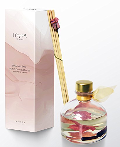 Sugar & Spice Scented Reed Diffuser Oil Gift Set by LOVSPA | Real Cinnamon Sticks! Cinnamon, Buttery Vanilla & Sugar Crystals | Smells like Fresh Baked Cookies! Great Housewarming Gift Idea