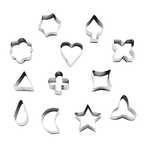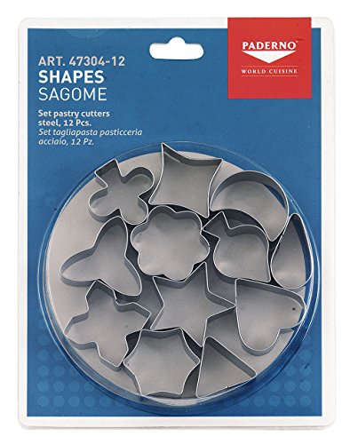 Paderno World Cuisine Assorted Geometric Shape Dough Cutters, 3/4-Inch Diameter, 12-Piece Set