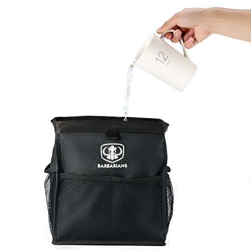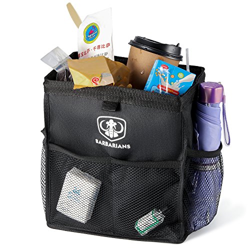 Barbarians Litter Can for Vehicles-Superior quality, Leakproof, Hanging Car Trash Container with Fixed HookAre you tired of fast food wrappers and beverage bottles on the floor and under your feet?Do you want to avoid the embarrassment of throwing rubbish out of your car?Hope to have a place to put all the wrappers and litter that accumulates inside your car?BARBARIANS Litter Can for Vehicles is Ready for you!*EASY TO INSTALL: With release buckle and adjustable strap, the garbage bag is easy to set on the seat.