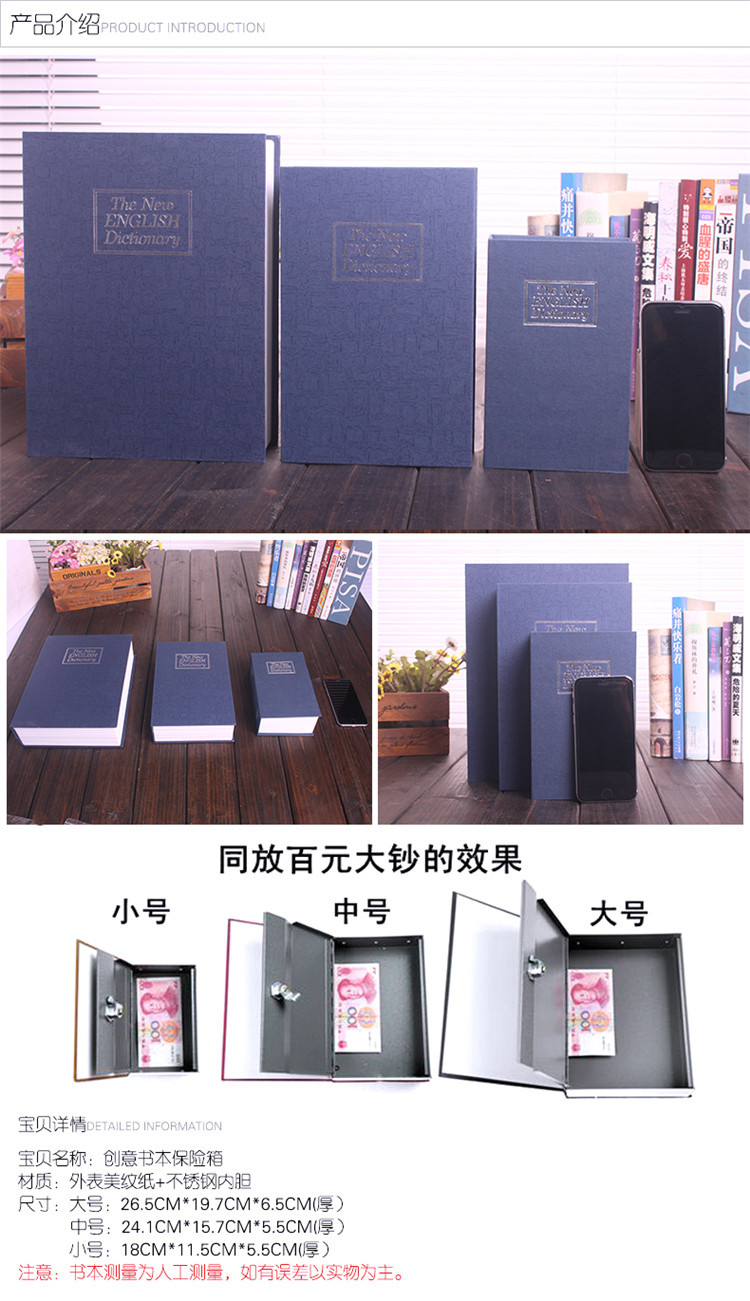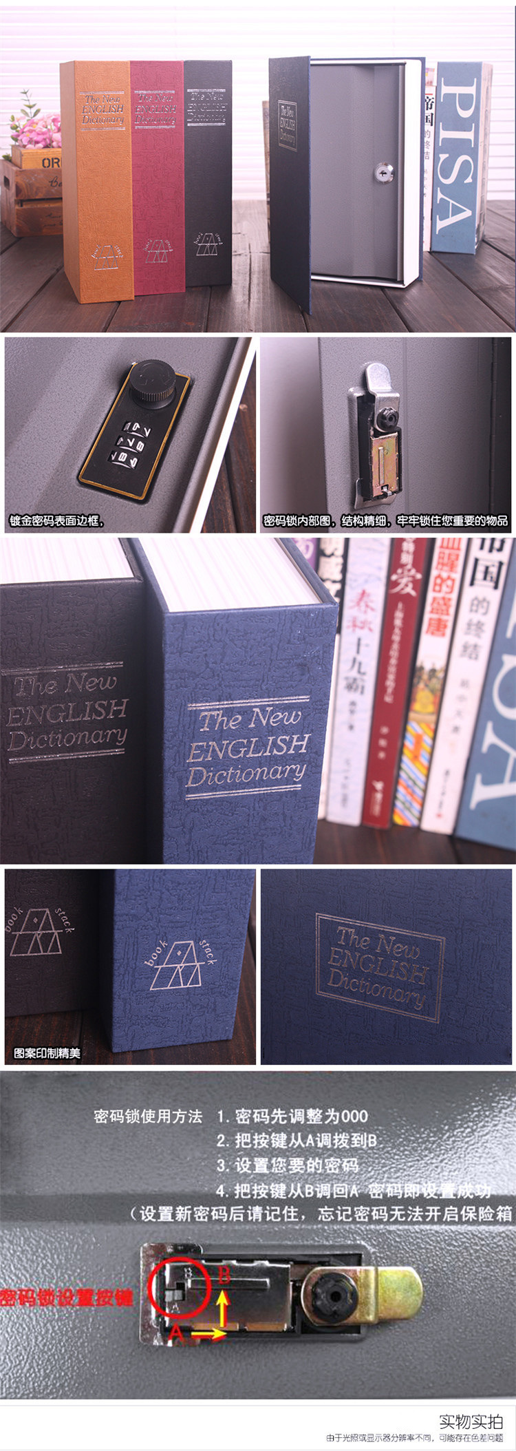 Fashion Ornament Book Safe Saving Box Excellent Gift for Friend Mini Key with Lock Dictionary Piggy Banks Cofre Home Decorationu0026nbsp;