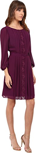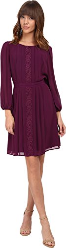 Chiffon A-line dress featuring pleated front and floral lace placket