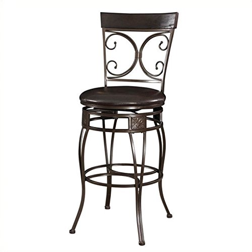 -. Brand : Powell -. Feature : Generously proportioned for people of all sizes / Black metal frame with black faux leather seat / Traditional style with double scroll design back / Curved legs and comfortable footrest / Dimensions: 20.12W x 18.87D x 47.25H inches -. Label : Powell -. Manufacturer : Powell -. MPN : 938-851 -. PackageQuantity : 1 -. PartNumber : 938-851 -. ProductGroup : Furniture -. ProductTypeName : HOME_FURNITURE_AND_DECOR -. Publisher : Powell -. Studio : Powell -. Title : Powell Big & Tall Back to Back Scroll Bar Stool