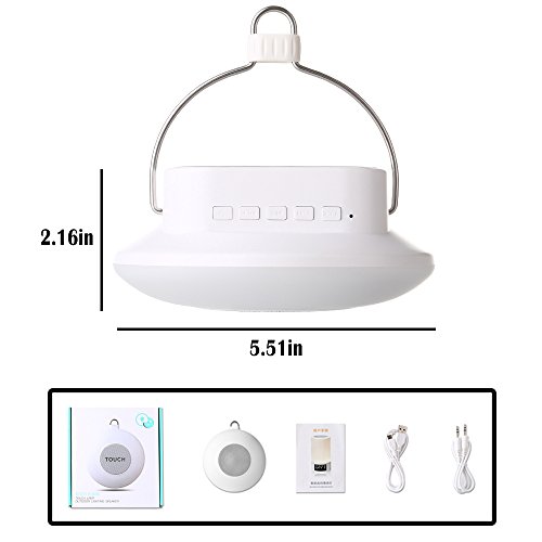 -. Feature : • Dimmable Color LED Table Lamp with Bluetooth speaker: 4 Level brightness adjustable warm LED light and 4 colors adjustable with cool touch sensor design on top. Super easy connecting / pairing with Bluetooth 4.0, compatible with all Bluetooth-enabled devices. Can be use as MP3 Player with USB and TF card input. / • Perfect bedside night light bedside table lamp: The lamp is dimmable make it provides just enough light source while not affecting your sleep. It also supports SOS lights. / • Suspensionable design: You can hang it at anywhere you want. It is equipped with rechargable lithium battery supports up to 8 hours music play back. / • Build-in Mic and Portable Speaker: Hands free calling, easy and convenient for you to answer the call. Portable speaker for easy carrying, suitable for party, yoga, travel, home, living room, bedroom. / • FM/ TF Card/ AUX-IN supported: You can use FM Mode to Listen to radio programs,or can play music from TF card (TF card is not included), and the AUX-IN jack allows you to play music from you iPod / MP3 players via 3.5mm audio cable.
