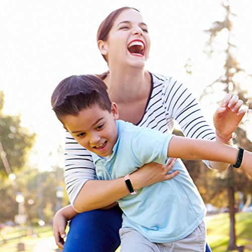 -Interchangeable colorful bands: black, blue, cyan, purple, pink