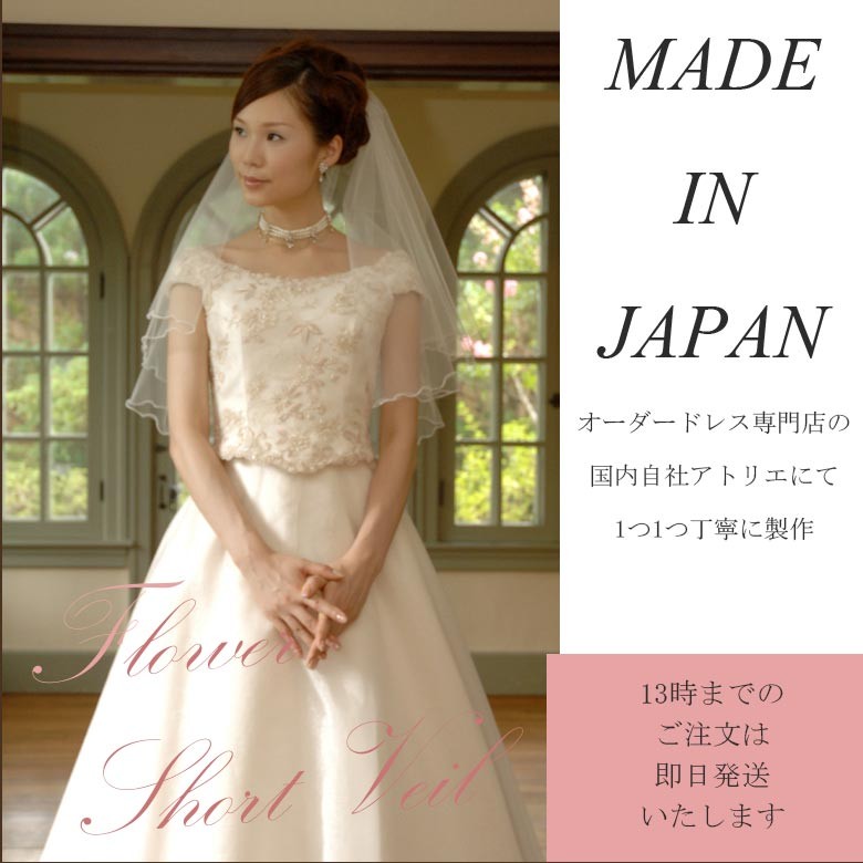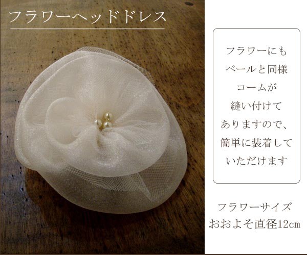 フラワー付き、ショートベール。