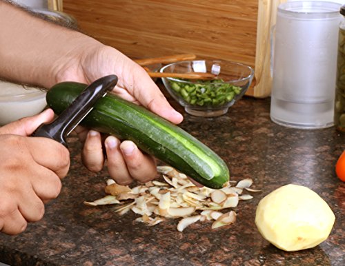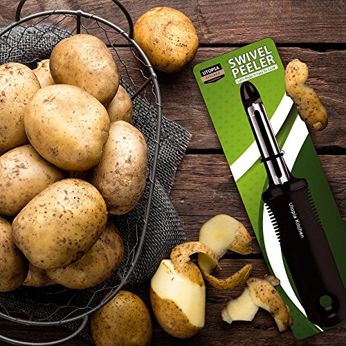Now make your cooking much easier and enjoyable with the Utopia’s top-rated Swivel Peeler that is made with 100% durable stainless steel blade which swivels to fulfill all your kitchen needs. Equipped with a comfortable and non-slip TPR grip, this is a must-have product for all your kitchen needs. Simplify all your cooking tasks and save your energy and time by peeling off all sort of vegetables and fruits within seconds. You'll now find out reasons to peel off fruits and vegetables when you claim this best in class Swivel Peeler just because of the following reasons: Best and Smooth Gliding Innovation: The edges along the surface of delivers easy and smooth gliding over the fruit and vegetable enabling you to peel them easily. High-Quality Stainless Steel Blades: The stainless steel edges remain ultra-sharp so you can peel right in the first run. You won't tire your hand by peeling over a similar place various times. Left or Right Hand Use: This Swivel Peeler can be comfortably held in either hand. One of a kind handle configuration with TPR grip gives you a chance to hold the peeler easily, even with wet hands. It won’t slip. Ergonomic plan: This peeler is lightweight yet to a great degree effective. Awesome for those with joint pain or carpal passage. Helpful hook allows you to hang your peeler for simple access and capacity. Dishwasher safe. 0 |
