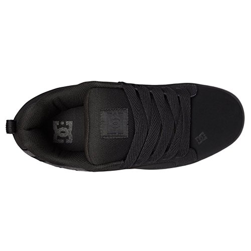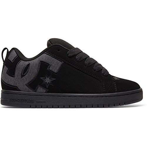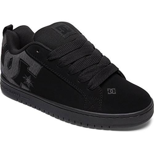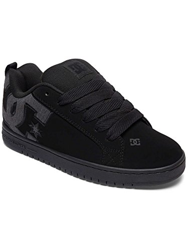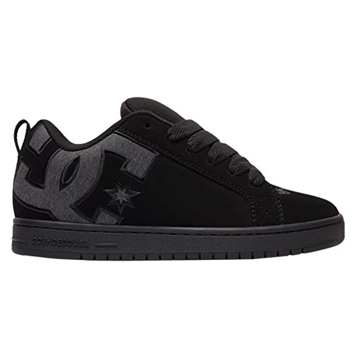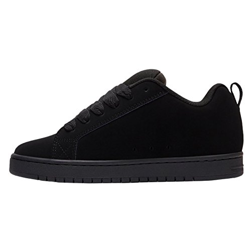 Studio : DC Shoes Publisher : DC Shoes Binding : Apparel Product Description With a classic skate style, the Court Graffik trainers for men from DC Shoes have been updated for the new season and are perfect for a casual stroll around town or hard at work on the skateboard. These all black lace up sneakers are manufactured from sturdy specialty leather with a nubuck finish and light mesh tongue. These casual lace-ups feature a very thick foam padded collar and tongue to provide ankle support, relieve pressure from the classic lace up closure and ensure protection on areas that come into contact with the skateboard. To ensure you get plenty of ventilation these lace ups have been lined with light and breathable mesh meant to keep your feet dry and cool as the day goes by. The non-removable padded insole is offering cushioning comfort with every step you take and it is lined with the same soft mesh to wick away moisture. Finishing these low top trainers is the signature DC rubber outsole with a cupsole construction to offer durability and impact resistance. The trademarked Pill Pattern treading on the sole provides reliable grip on any surface. These trainers also have vent holes on the inside of the shoe to increase ventilation and a fabric heel hoop to ensure easy on and off. 0