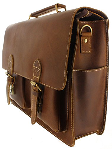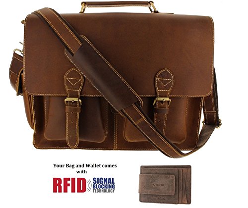 Product Description Viosi Leather Messenger Bag We created a truly unique one of a kind functional fashion statement for our Amazon customers that offers superior workmanship, Fitting laptops, MacBooks, tablets and iPads with a maximum width of 16" along with a no questions 10 year warranty. You will be fully prepared for your day ahead, whether you're travelling on the train, in the city or within a busy school corridor. The shoulder bag has a cushioned interior which will protect your belongings from daily knocks bumps. 100% real leather, interior and exterior pockets, locking antique brass locks and hardware and an adjustable removable leather fronted double padded shoulder strap.