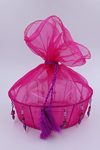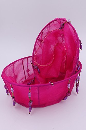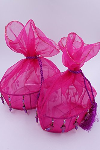 Nonagon 2 Pink Decorative Oval silk glass gift basket with beads and tassels for Christmas, (size 5.2x7.2 and 4x6 inches)