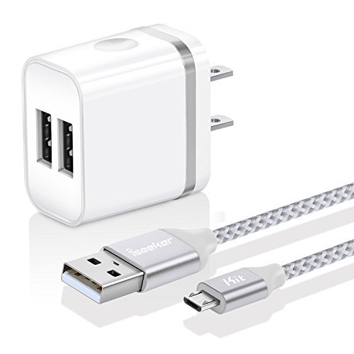 -. Feature : Dual USB Port: 2-Ports USB wall charger share a total of 2.0A between whichever two devices you plug in. Charge your two mobile devices simultaneously at high speed. / Travel Ready: Input: AC100-240V Output: DC 5.0V 2.0A£¬the worldwide adaptable input voltage, 28g ultra compact size makes it the top choice for distant trips. / Extra Cable&Length: With Sturdy and Tangle-free Nylon fabric braided USB2.0 cable, can bear 8000+ bending and repeated unplug test. Excellent 6Ft length is convenienct while charging and detachable for use with most computer USB ports. / Wide Compatibility: Ideal for Most Android and Windows phones, tablets and many other devices including: Samsung / Nexus / HTC / Motorola / Nokia / LG / Sony / Blackberry / PS4 / Xbox / PS Vita / Nintendo DS / GPS devices. / What You Get: 1 Pack 2-port USB Wall Charger + 1 Pack Micro usb cable. iSeekerKit 12-month hassle-free warranty with considerate customer service, 24 hours prompt reply.