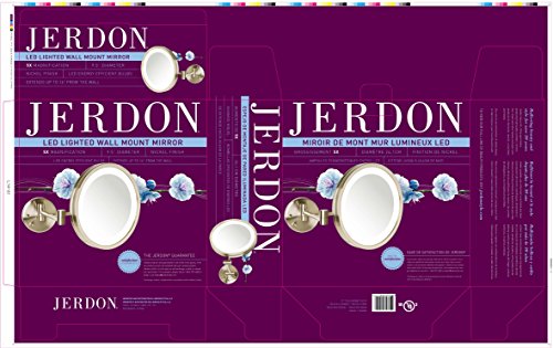Jerdon HL1016CL 9.5-Inch LED Lighted Wall Mount Makeup Mirror with 5x Magnification, Chrome Finish