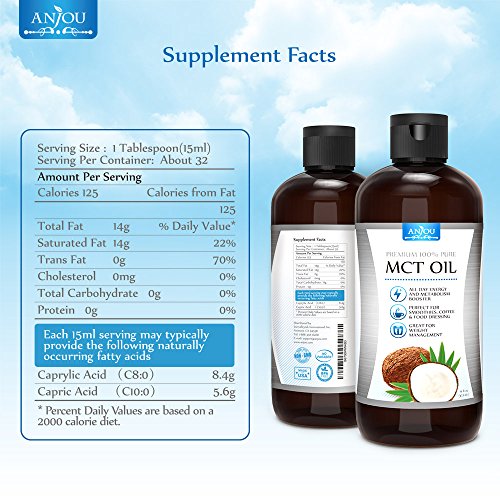 Studio : Anjou Publisher : Anjou Binding : Health and Beauty Product Description Improve Sports Performance MCT (Medium Chain Triglycerides) provides fast and sustained energy for your body thanks to its unique chemical structure that allows your liver to digest it easily. Consumption of MCT oil before exercises or workouts can supply a more efficient form of energy than burning body fat, you get improved stamina and performance in a 100% natural way.