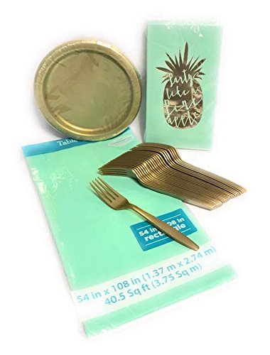 Pineapple Pop Appetizer or Dessert Party Bundle for 16 Guests - Includes Plates, Guest Towels, Tablecover and Forks
