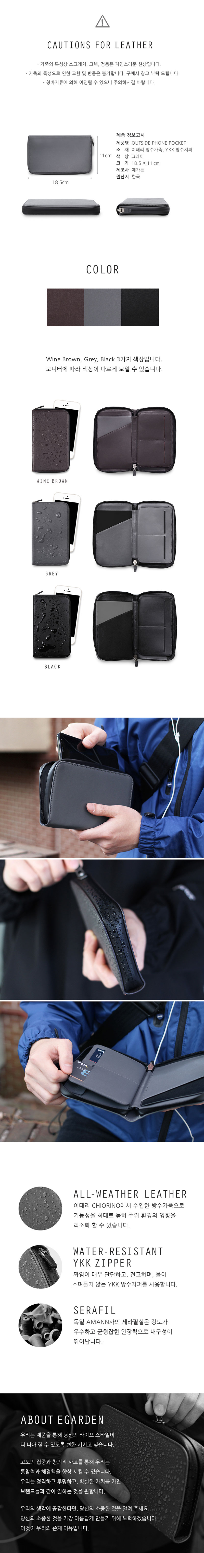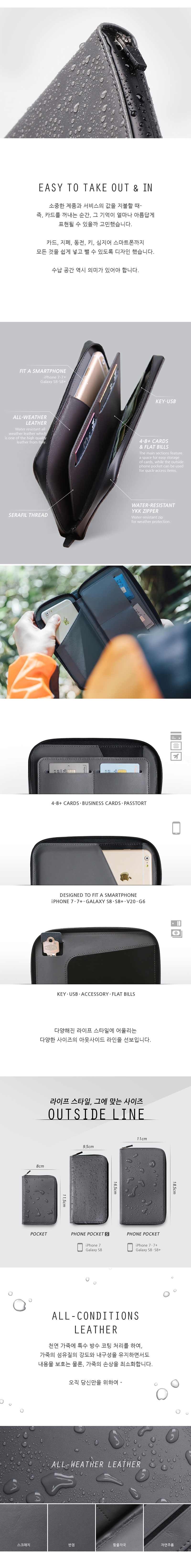 방수지퍼와 방수가죽으로 어떠한 상황에서도 보호되는 지갑.