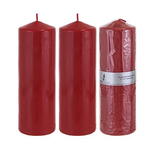 Mega Candles - Unscented 3" x 9" Round Pillar Candle - Red, Set of 3