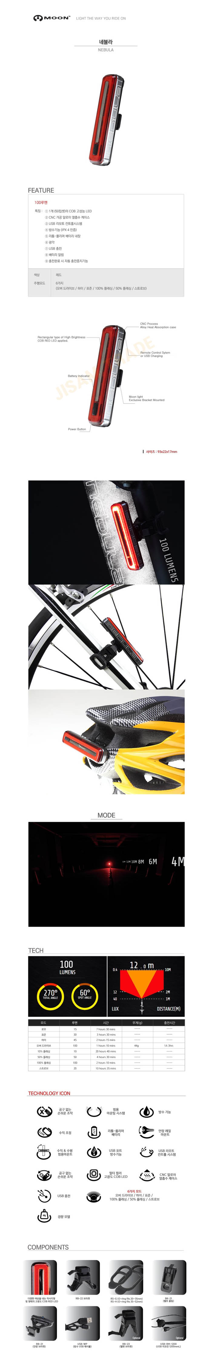 Moonlight Nebula Rear Bike 1OO Rumen COB RED LED Tail Light USB Rechargeable Battery