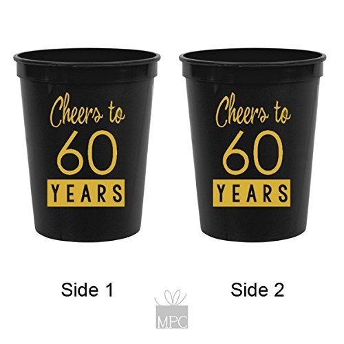 60th Birthday Black Stadium Plastic Cups - Cheers to 60 Years